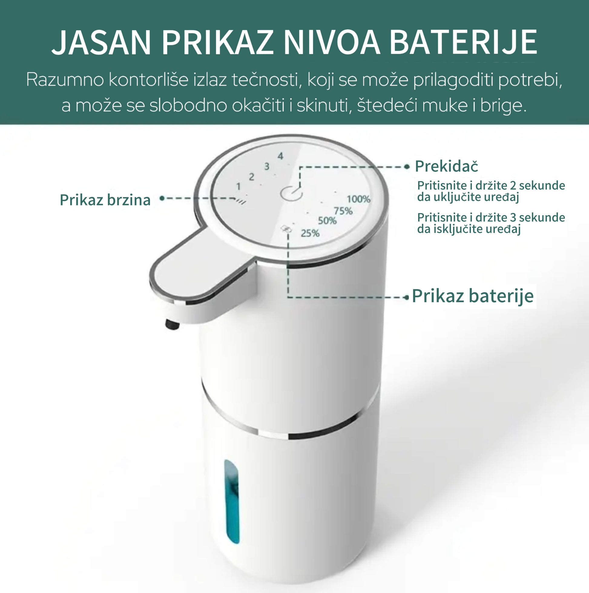 Unapredite higijenu uz moderan automatski dozer sapuna. Zahvaljujući senzorima na dodir, dozer izbacuje tačno onoliko sapuna koliko vam je potrebno — bez dodirivanja. Idealan za kupatila, kuhinje, kancelarije i javne prostore. Lako se dopunjava, ne curi i uklapa se u svaki savremeni enterijer.